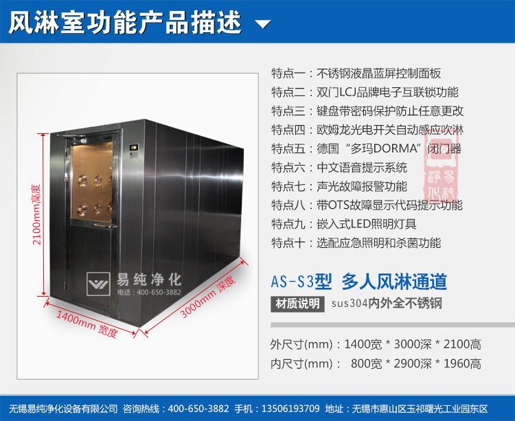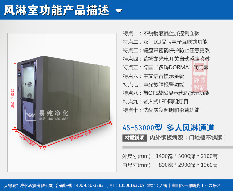 備注:我們可根據客戶要求私人定制設計及生產各類非標風淋室、貨淋室,非標訂制,彰顯企業實力,咨詢熱線:400-650-3882 ,易純凈化竭誠為您服務