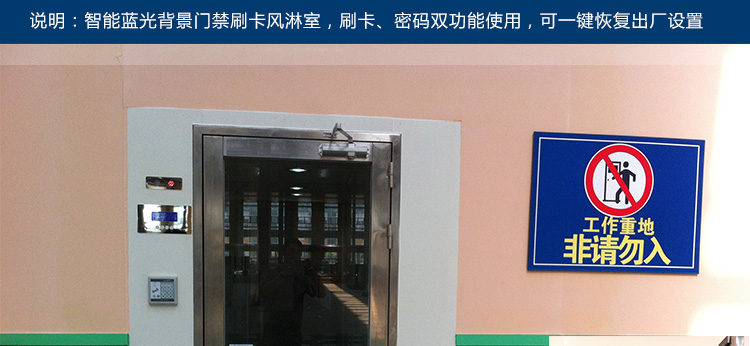 門禁刷卡控制風淋室,專門管理嚴格的車間設置的系統。本系統可有效管理車間內部人員的有效出入和考勤;可分別設置“密碼輸入”、“指紋考勤”、“刷卡進入”等形式。感應控制風淋室廣泛適用于保密性較高的風淋室車間外門,人員進入前需要進行刷卡等身份認證。工人出車間時不需要刷卡,只需要按動內部的彈跳單向開關即可實現內部解鎖。