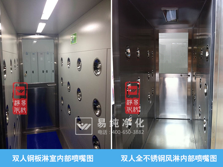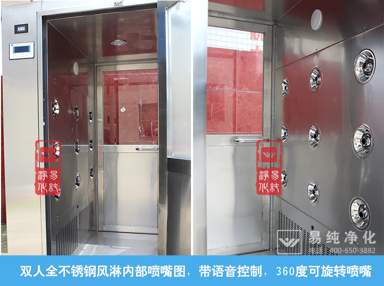 分類:風淋室大致可分以下幾種:單人單吹風淋室,單人雙吹風淋室,單人三吹風淋室,雙人雙吹風淋室,三人雙吹風淋室,風淋通道,不銹鋼風淋室,智能語音風淋室,自動感應移門風淋室,L型轉角風淋室,不間斷通行風淋室,卷簾門風淋室,貨物風淋室,防爆風淋室,防靜電風淋室,水淋室等。